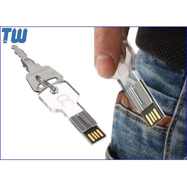 Transparent acrylic 8GB USB flash drives, classic key type storage device. 3D laser engraved inside acrylic, seeing logo at any angle. Light up brands while connecting computer. Fatastic promotional key to target client.